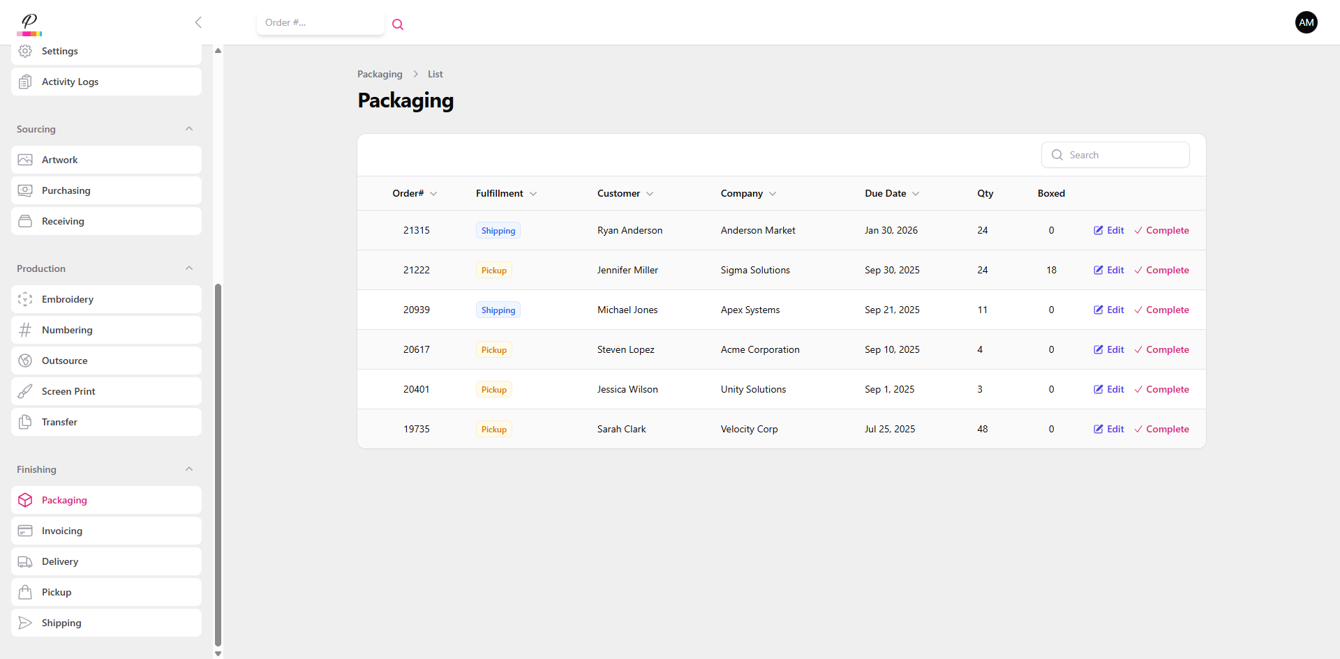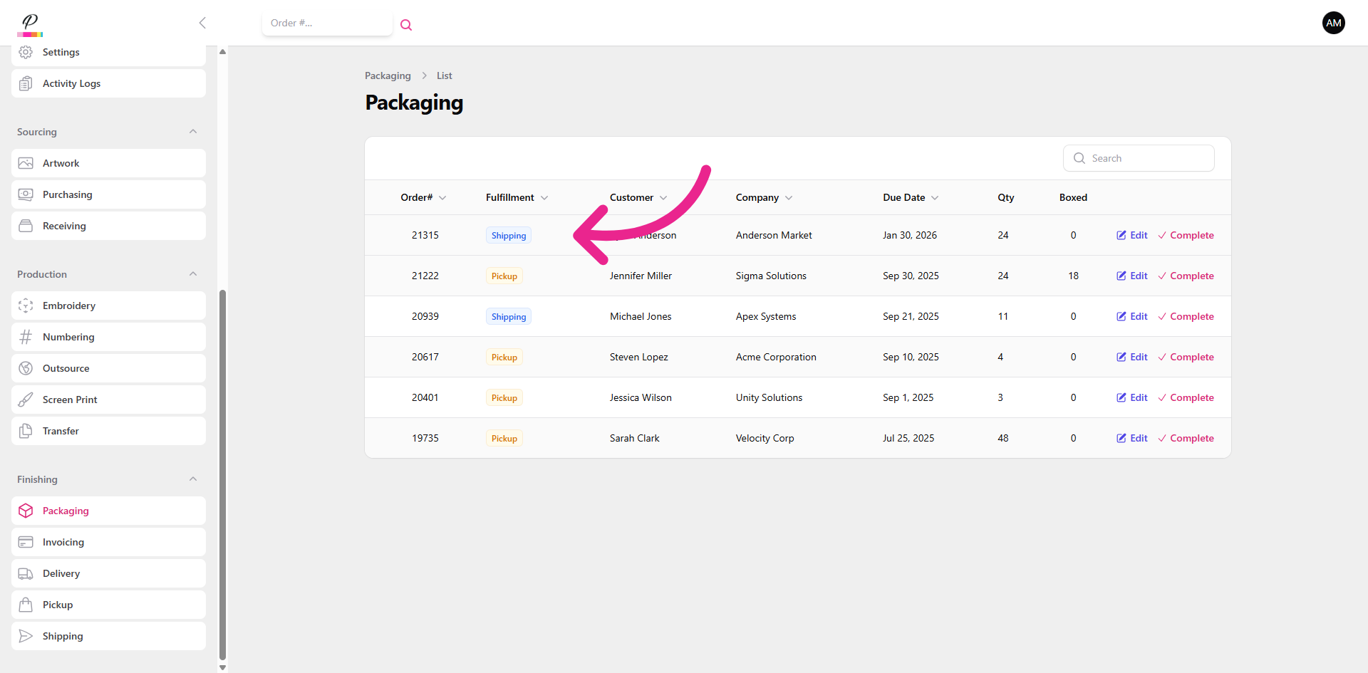 In this column, you will see the fulfillment type which is helpful in letting the packaging department know which department will be responsible for transferring the completed order to the customer.