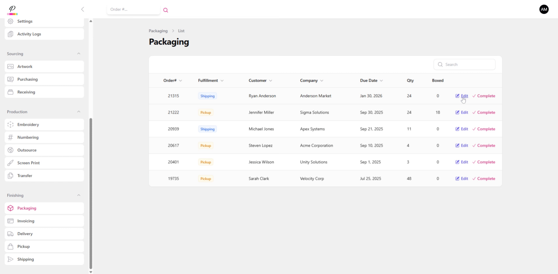 Just like with most queues, the process for clearing out the order is simple. Edit, fill in quantities for each item row.