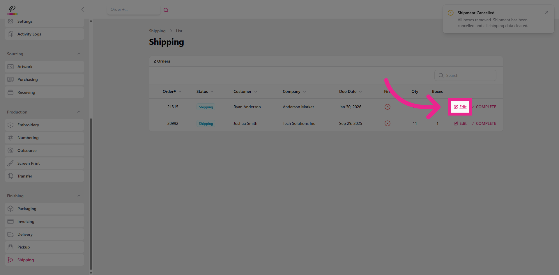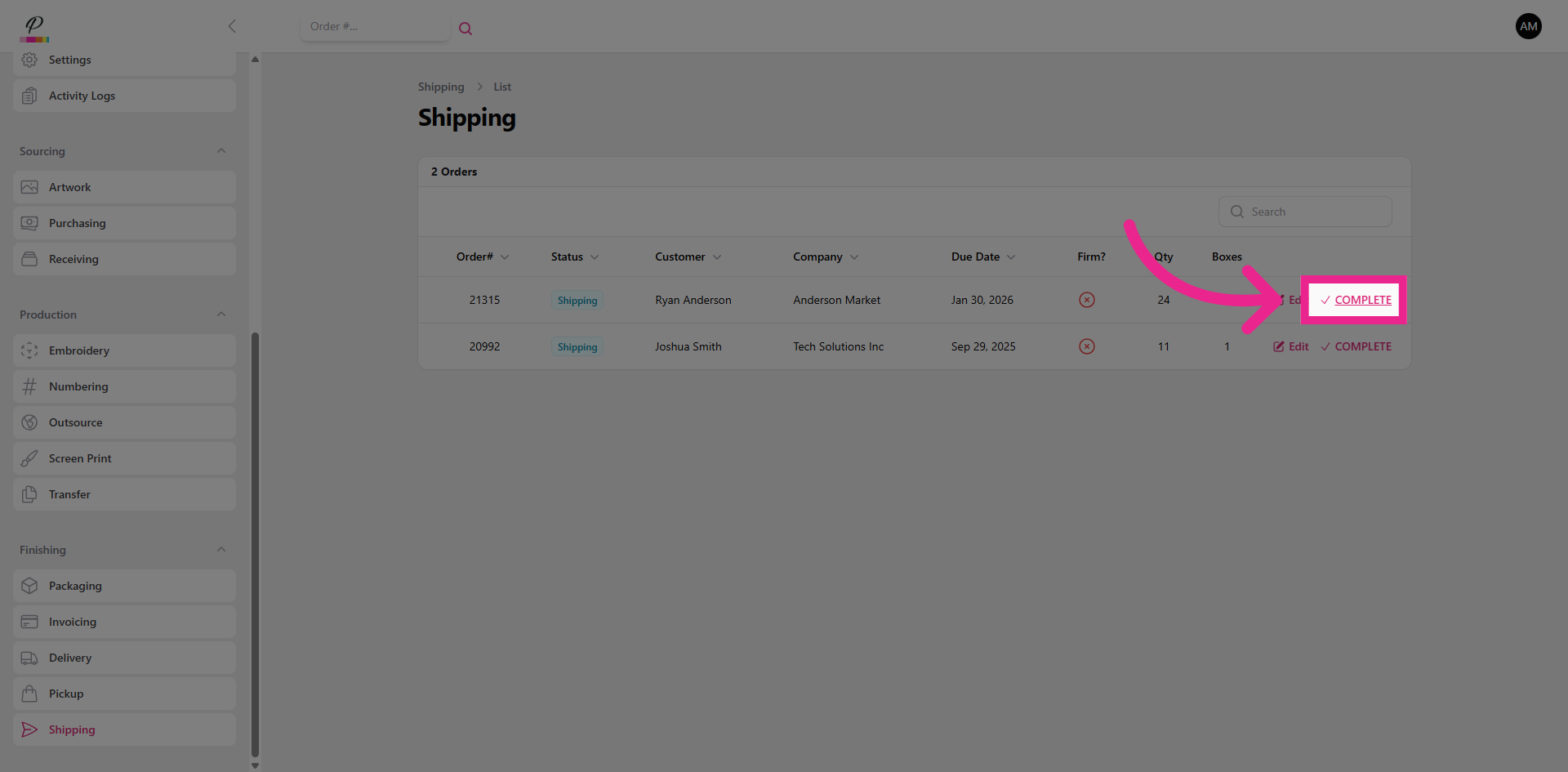 That's it, you're done! There's nothing left to do on the order now. You have successfully moved the order through the entire process from start to finish