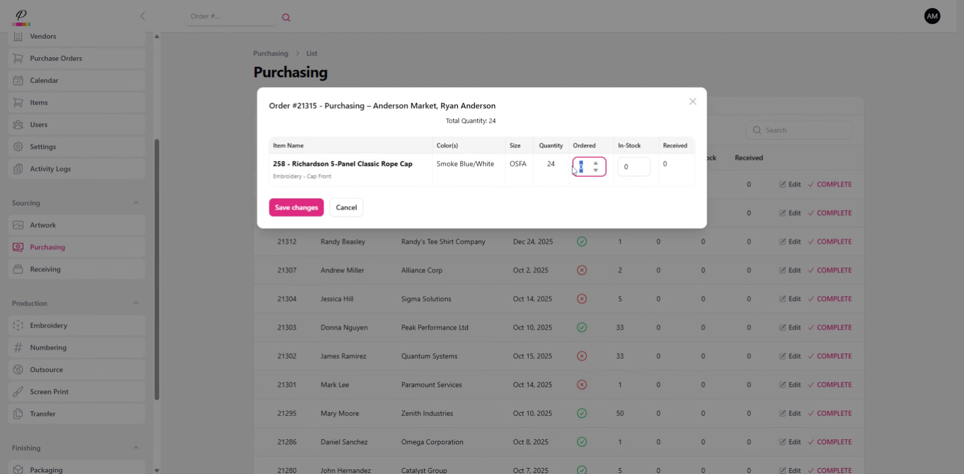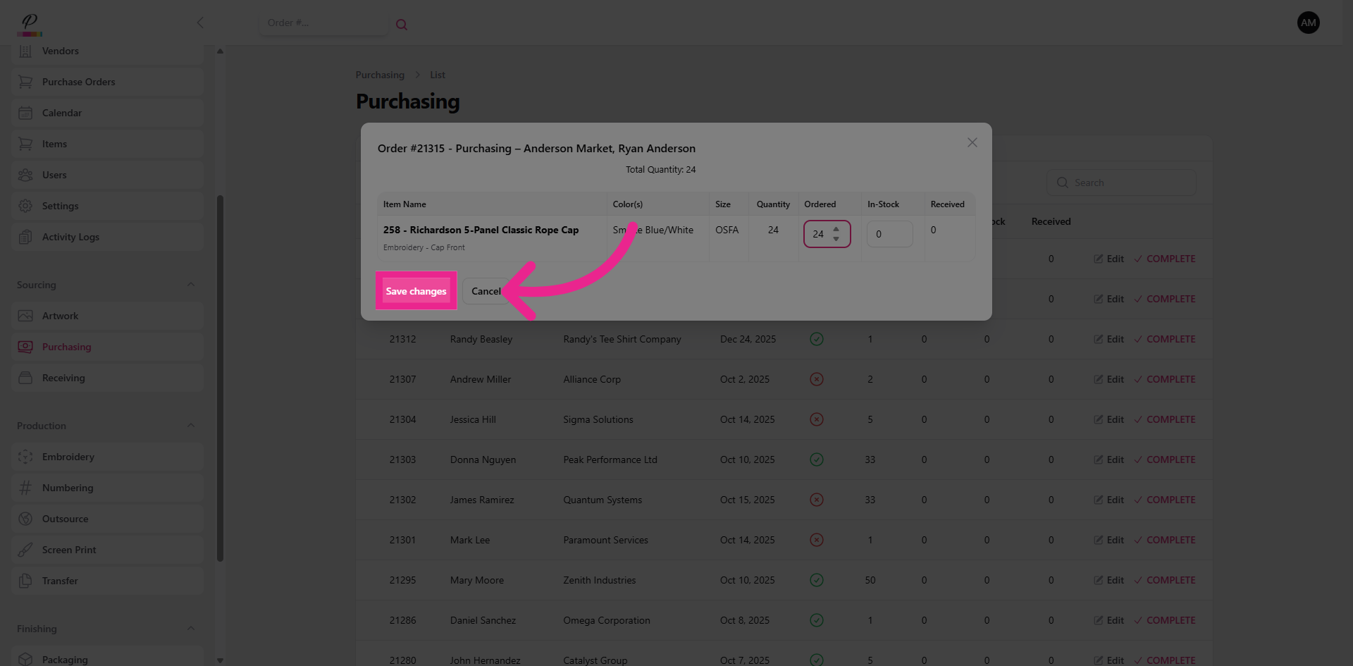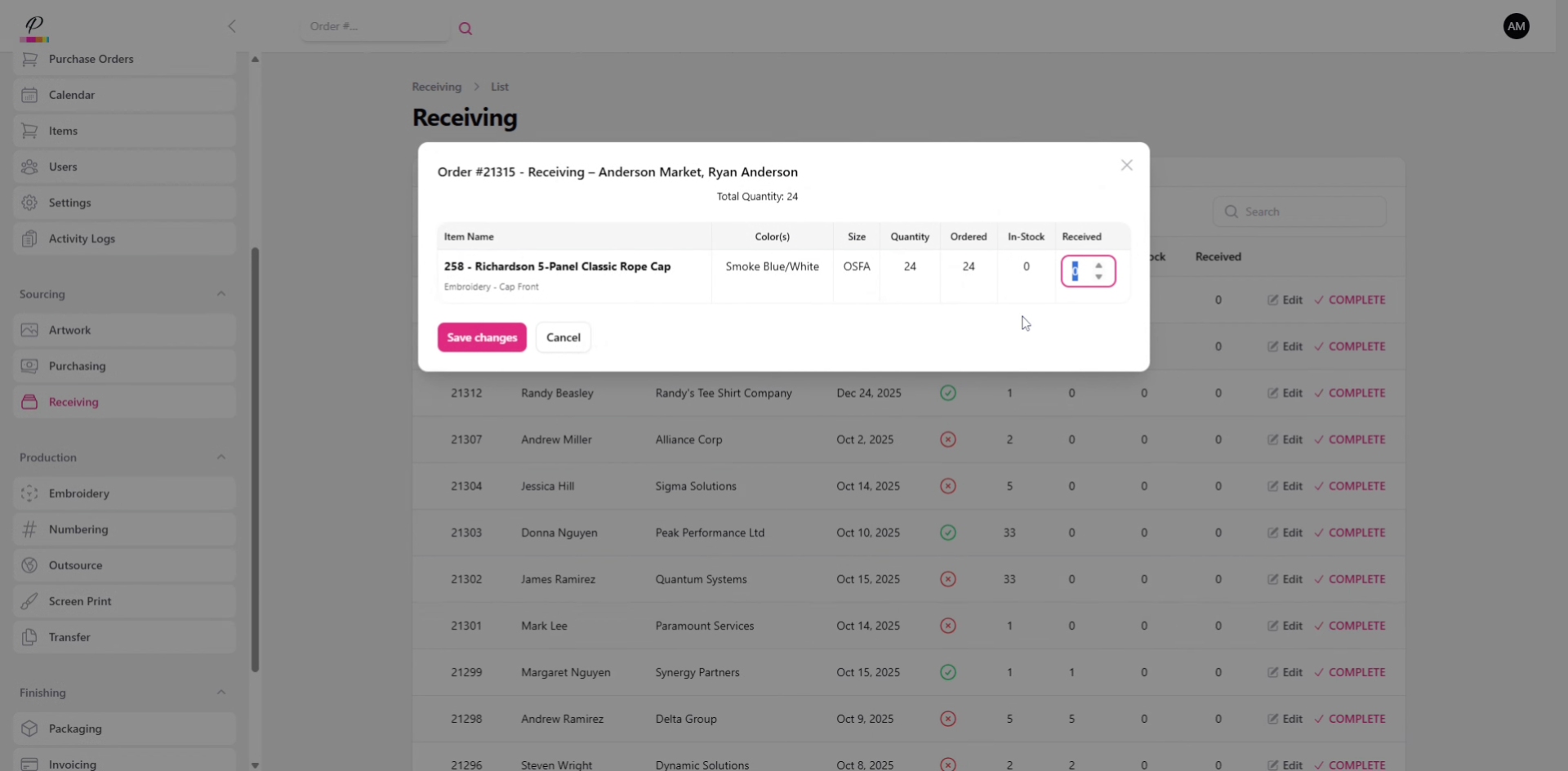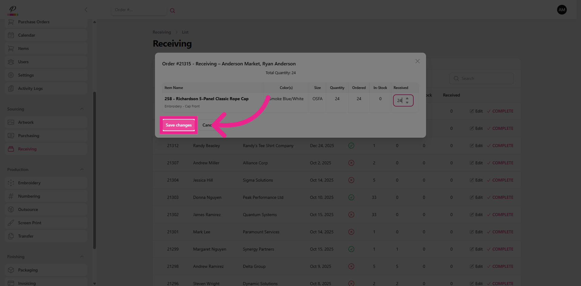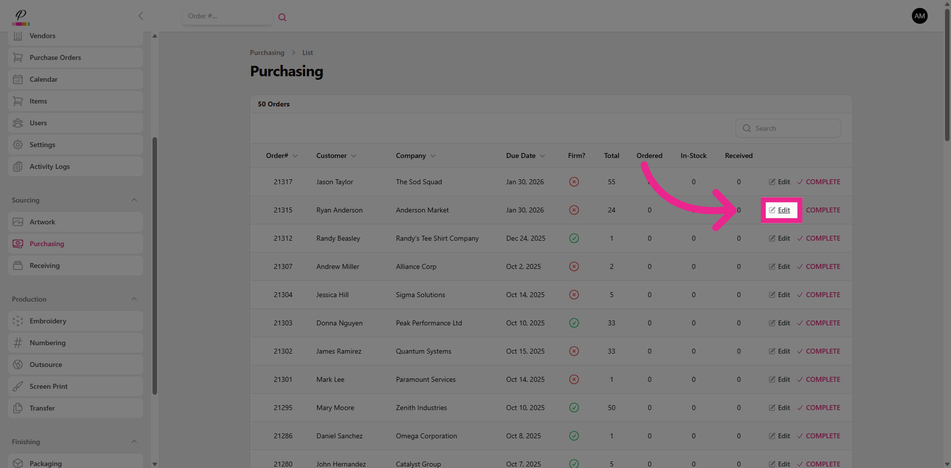 and confirm. Success. Once both purchasing and receiving departments are finished with the order, if artwork has been completed, the order will move forward into production